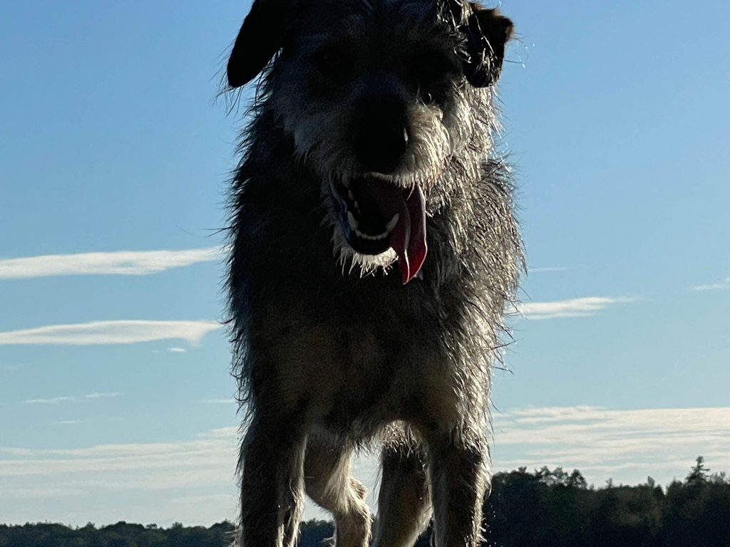 It got pretty hot up their too. Over 90 degrees! Ugh. Thank god for the lake!!! My mom’s dog goes swimming with us. As the sun was setting on the Solstice my boyfriend was lying on the deck and got a great picture of Finley looking like a savage beast lol