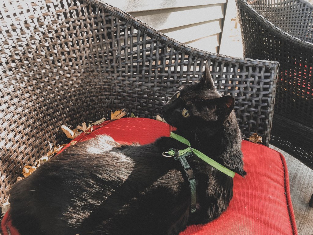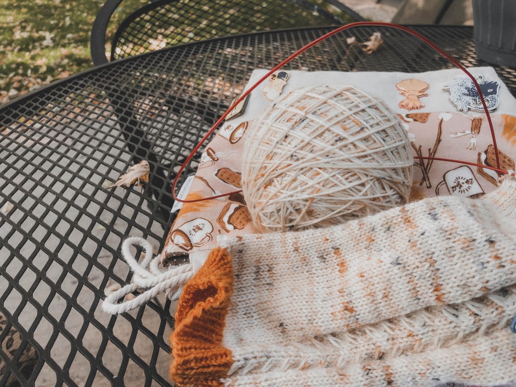 This weekend, despite the fact that the leaves are all yellow and orange and falling through the air when the wind blows like autumn snow, it is 70 degrees and all the windows have been thrown open. I started to pull down my garden, but decided to embrace the unexpected weather and spent a lot of time sitting outside and knitting with Churchill.