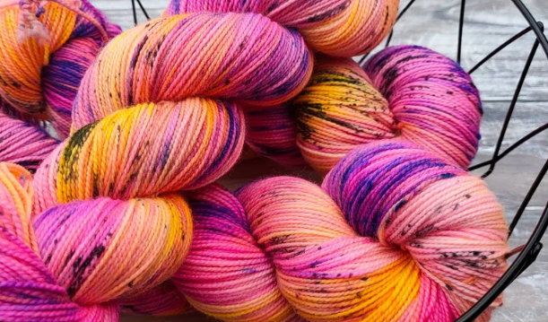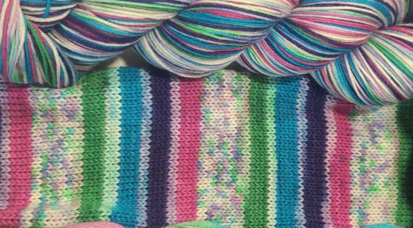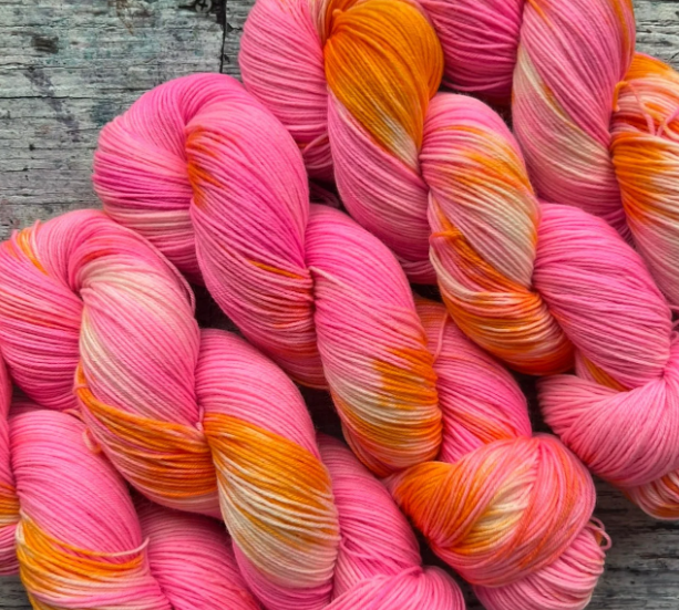 In the past I have used stash yarn for my Summer Sock camp socks, with the exception of what I purchased to knit as Christmas gifts. But this year….I went WAY overboard with new yarn. Like I said in my general summer knitting plans post, the logo theme for SSC24 was 80s/90s, and while this was not a theme theme for the entire KAL, I embraced it and went full on 80s/90s/synthwave.